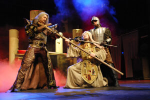 Úvodní scéna v kostele – Dracula (Daniel Hůlka) a Kněz (Jaromír Holub)